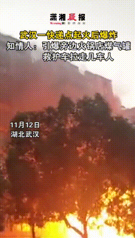 11月12日,湖北武漢洪山區(qū)一快遞收發(fā)點(diǎn)起火,導(dǎo)致隔壁火鍋店的煤氣罐被引爆,一排門(mén)面都被燒完。