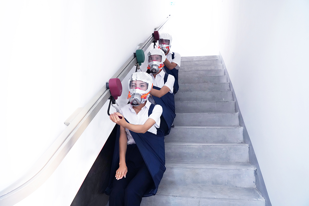 安全座椅內置電子定位芯片,與樓梯通道內安裝的專用設備實現逃生過程中的位置追蹤,座椅采用B1級防火材料,背部內嵌反光箔膜,便于識別濃煙中的逃生者。